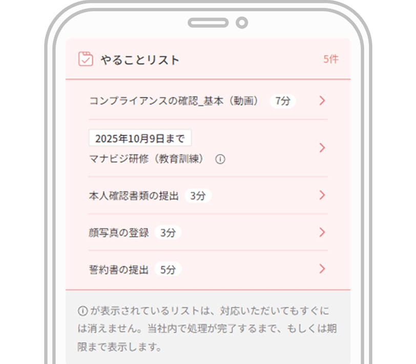 対応事項(入社時の手続きなど)がMYページで一覧表示されます。