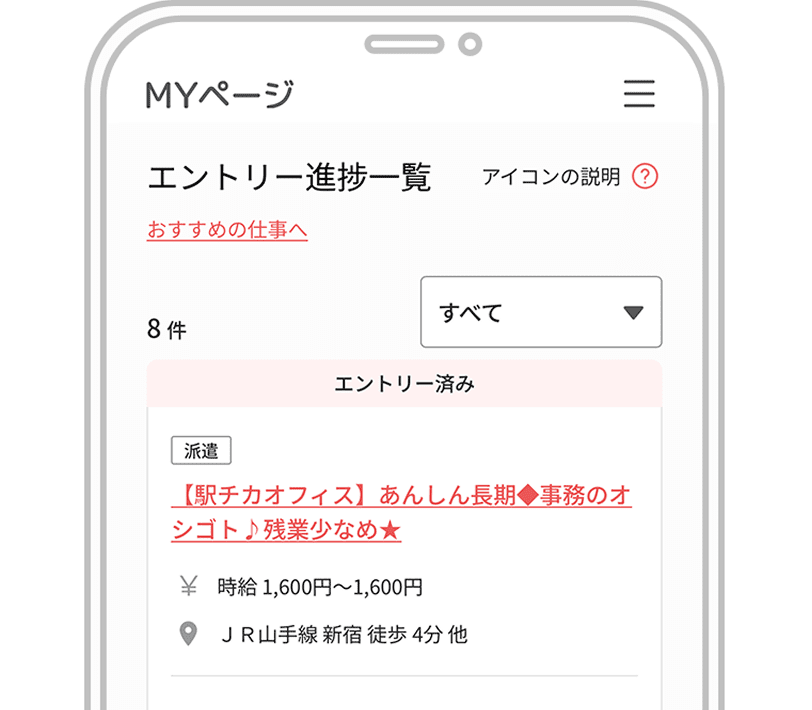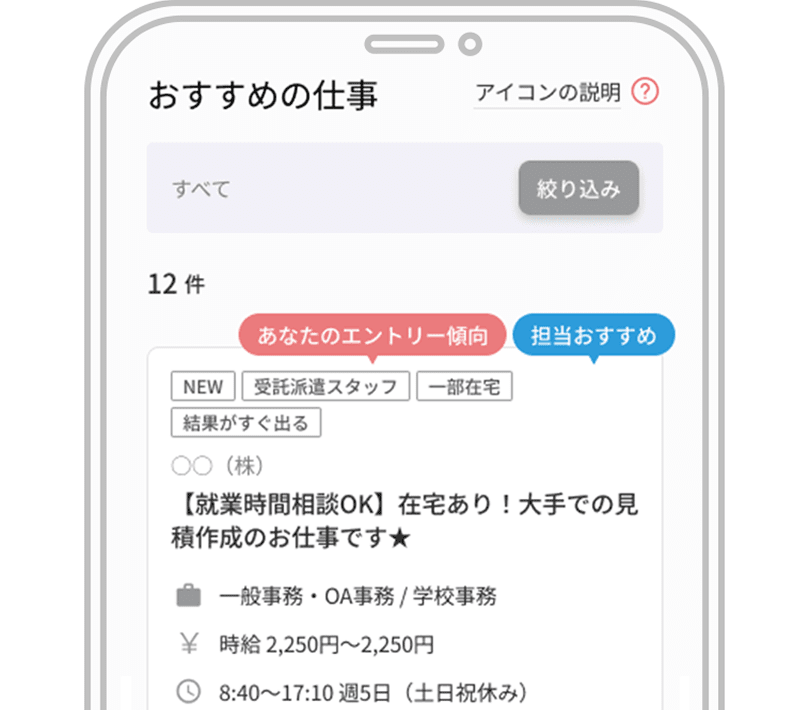 - おすすめの仕事・アイコンは条件に一致した場合のみ表示されます。