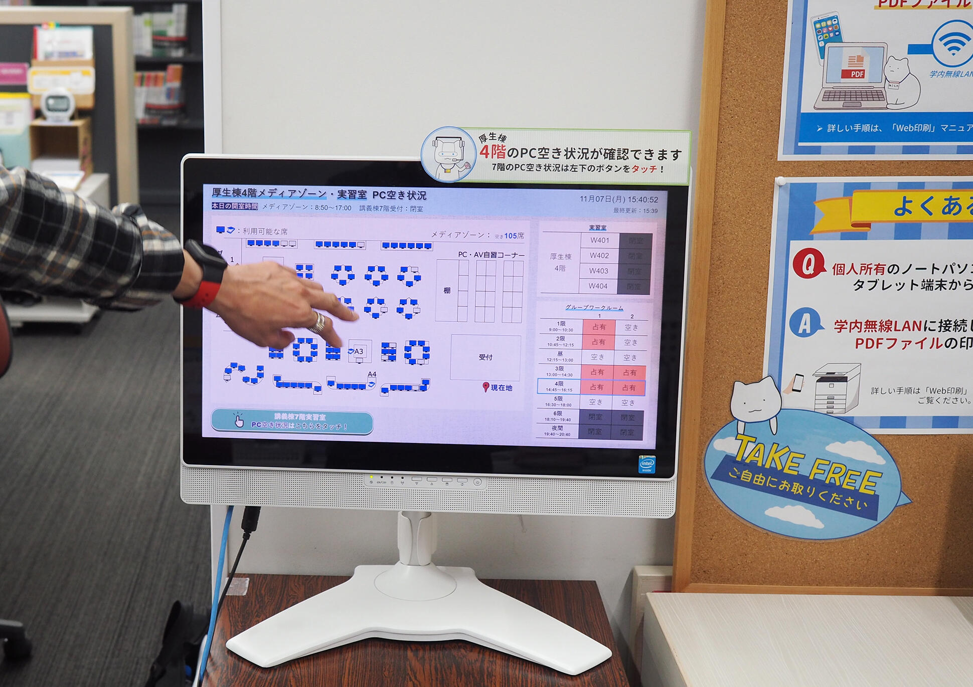 例えば学生スタッフが、『情報メディアセンター』で「パソコンの空き状況を一覧できるシステム」などの開発や改修を担当しました。そういった業務を通じて学びを得たことで、卒業後にSEとしてIT業界に就職したケースもあったようです。