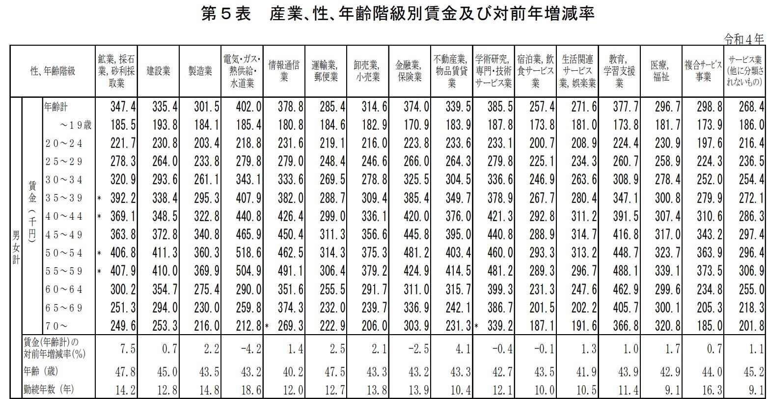 引用:厚生労働省|令和4年賃金構造基本統計調査の概況