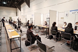 短時間の企業説明会も開催しますが、面接会が本イベントの主旨ですので、参加者は選考志望企業を絞り込み、応募書類を持参し面接に臨みます。