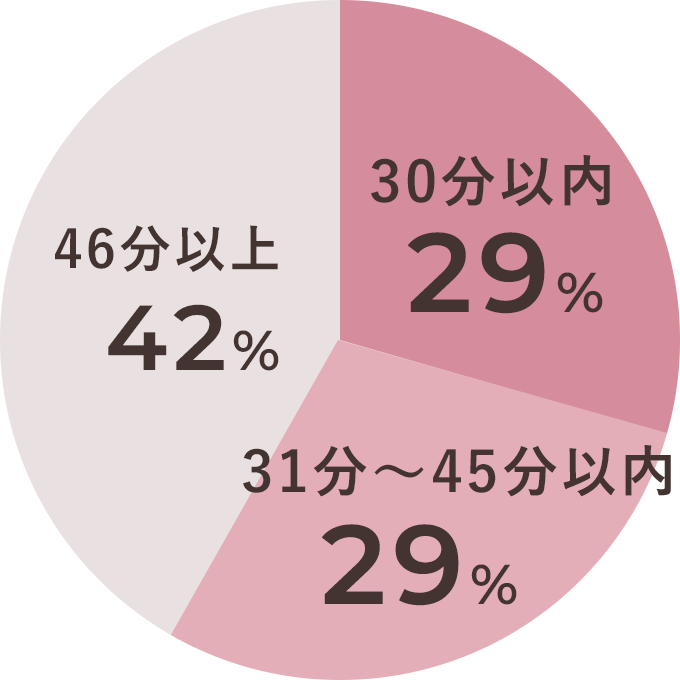 そのうち約79%*が残業なし・少なめ(1日30分以内)で、早めの退社が可能な仕事も多くあります。
