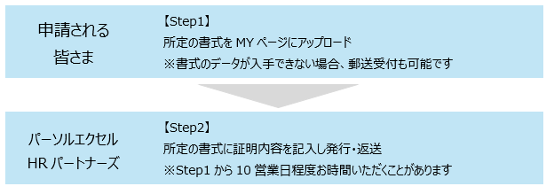 郵送での受付も可能です。Step2. 証明書を作成し、電子発行(パーソルビジネスプロセスデザインが対応します)